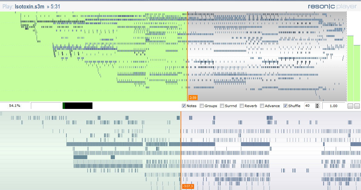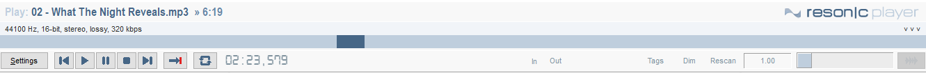 Almost a year after the first public release, this is how the visualization and transport sections looked like in Resonic Player.