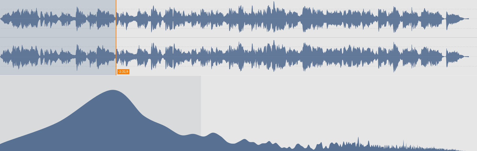 This build contained a feature I called loudness-based fluid waveforms, smooth waveforms that visualize a portion of loudness in the audio signal, as well as a secondary RMS waveform.